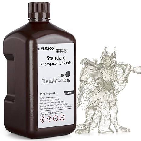 ELEGOO 3D Resina Rápida LCD UV 405nm Curado, Resina 3D para Impresora 3D LCD, Estándar Resina Fotopolímero con Alta Precisión y Baja Contracción, Resin 3d Printer(2000g Transparente)